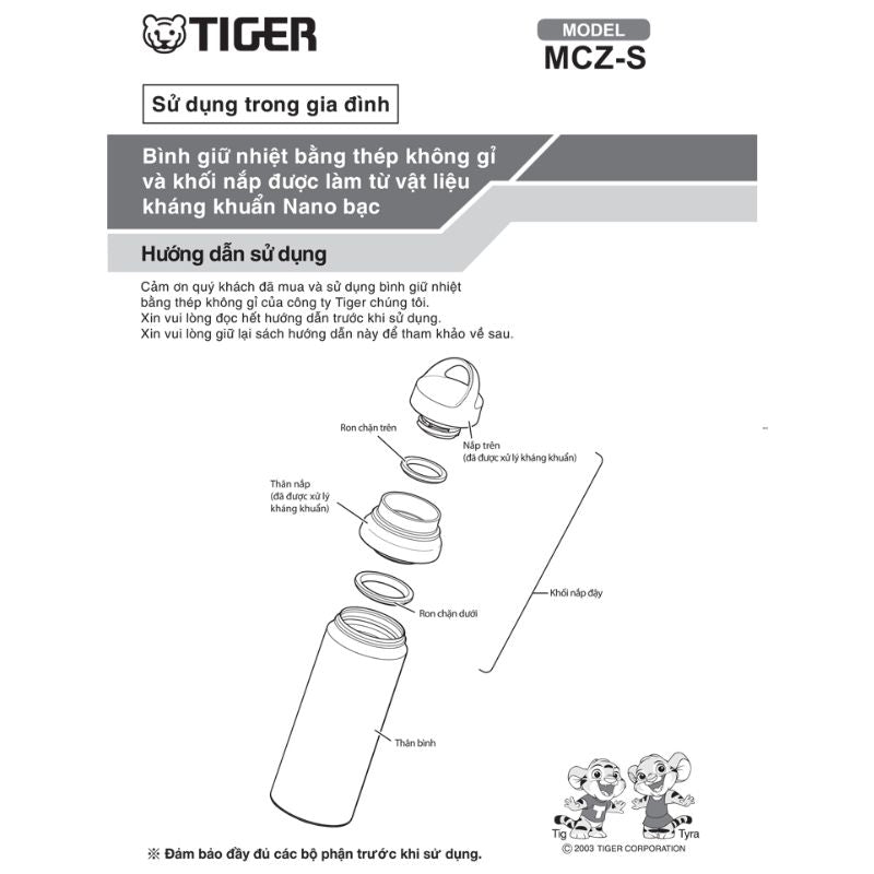 Tập đoàn Tiger khao khát đem lại sự tự tin và đảm bảo an toàn cho tất cả mọi người khi sử dụng những bình giữ nhiệt Tiger. Với tâm nguyện đó, Tiger đã phát triển bình giữ nhiệt Tiger MCZ-S060 với nắp bình được xử lý kháng khuẩn đạt chứng nhận SIAA (Hiệp hội công nghệ sản phẩm kháng khuẩn).