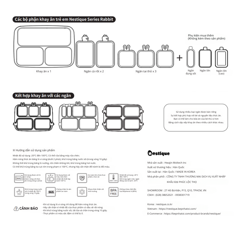 Khám phá chi tiết các tính năng nổi bật của Khay ăn trẻ em cao cấp 5 ngăn Series Rabbit hiệu Nestique N-11-1