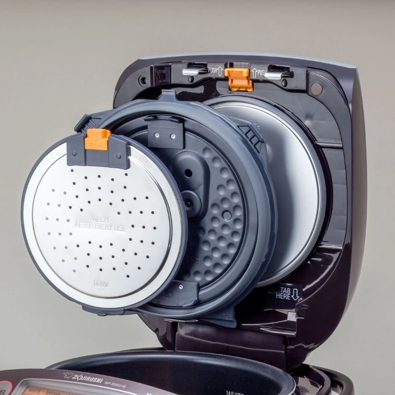 Nồi cơm điện tử cao tần áp suất Zojirushi NP-BSQ18V với thiết kế nắp trong, nắp thoát hơi và lồng nồi có thể tháo rời giúp bạn thuận tiện trong việc vệ sinh sản phẩm sau mỗi lần sử dụng. Không chỉ vậy, nồi cơm điện tử cao tần áp suất Zojirushi có tích hợp quai xách cách nhiệt, chắc chắn sẽ giúp bạn dễ dàng với việc cầm nắm, di chuyển sản phẩm mà không bị nóng cũng như rất tiện lợi trong khi sử dụng với thiết kế tích hợp lỗ ghim và ngăn đựng muỗng xới cơm trực tiếp bên phải thân nồi cơm.