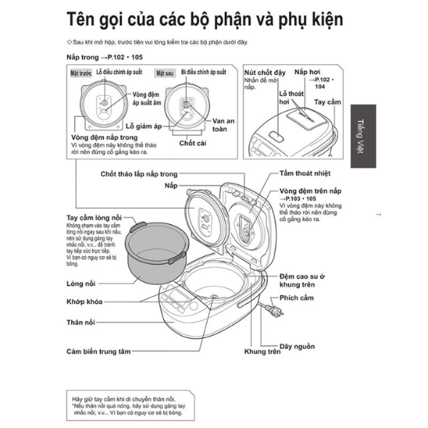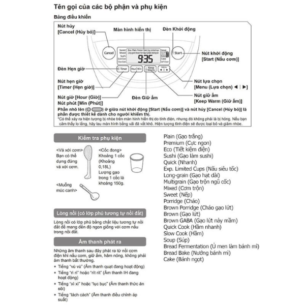 - Chức năng áp suất tự động chỉ thực hiện ở chức năng nấu tiết kiệm điện, nấu gạo trắng, nấu cơm cực ngon, nấu gạo hạt dài, nấu cháo, nấu cháo, nấu gạo trộn ngũ cốc, nấu gạo lức, nấu gạo lức nảy mầm