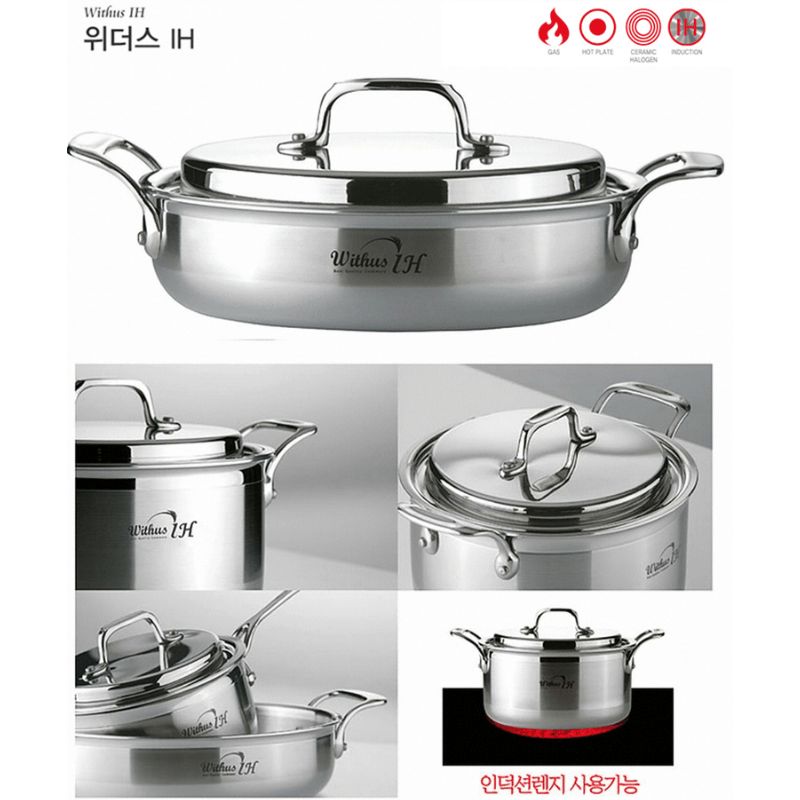 Nồi nhà bếp (loại nồi size trung) Inox từ tính cao cấp hiệu PoongNyun Series Withus 3 lớp nguyên khối thân và đáy SUS304 (18/10)/ALU1050/SUS430 dầy 2.5mm chống gỉ sét, chống ăn mòn, giữ và gia nhiệt lâu hơn giúp thức ăn mau chín tiết kiệm thời gian và nhiên liệu, thiết kế nắp chống trào, 2 tay cầm chống nóng, sử dụng trên bếp gas, bếp điện, bếp hồng ngoại, bếp từ, gồm 02 món (1 nồi và 1 nắp Inox 20cm).